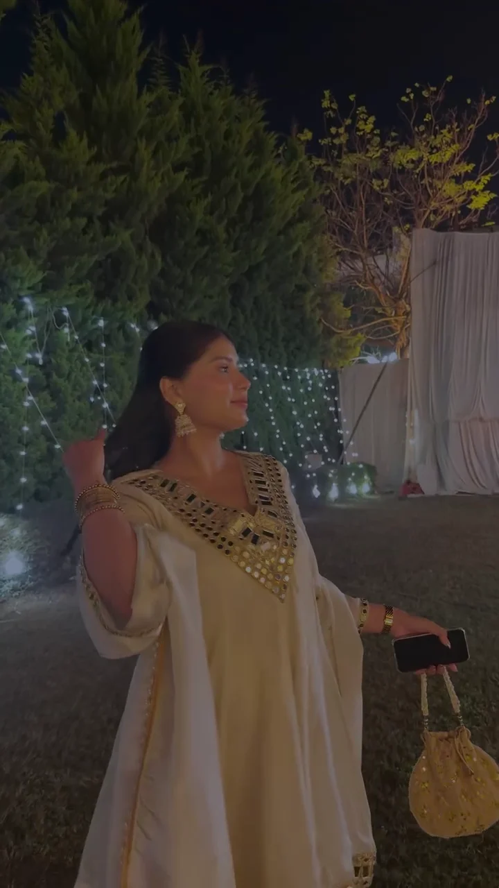 A graceful ivory kurta set featuring subtle embellishments along the neckline and hem. Paired with a matching dupatta, this outfit exudes understated elegance. Perfect for evening gatherings, festive events, and special occasions, it delivers a refined and sophisticated look.