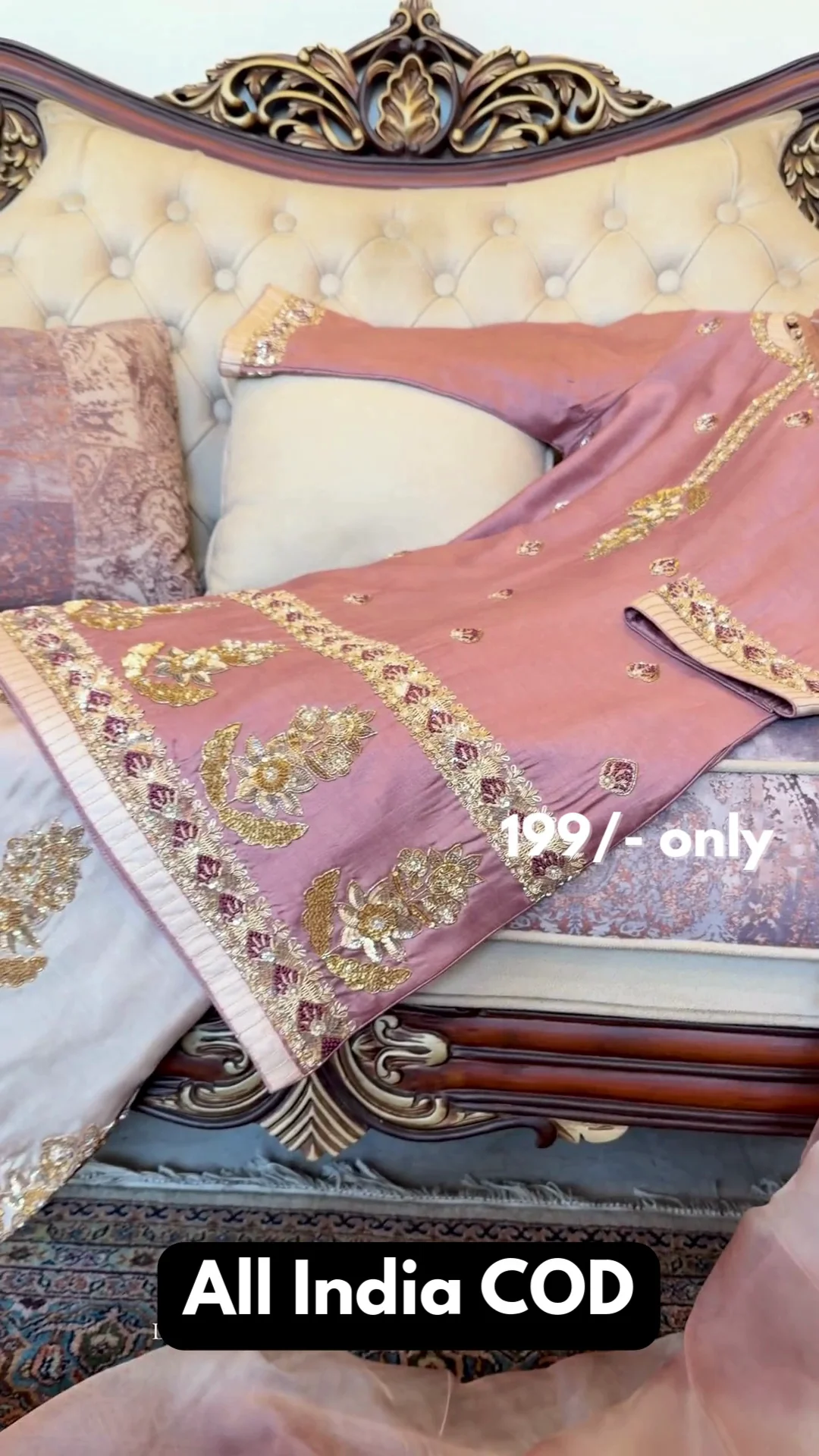 A heavily embellished dusty pink gown-style outfit with detailed bodice embroidery and a flared skirt. Paired with a matching dupatta, this set delivers a graceful and regal look ideal for wedding functions and festive events.