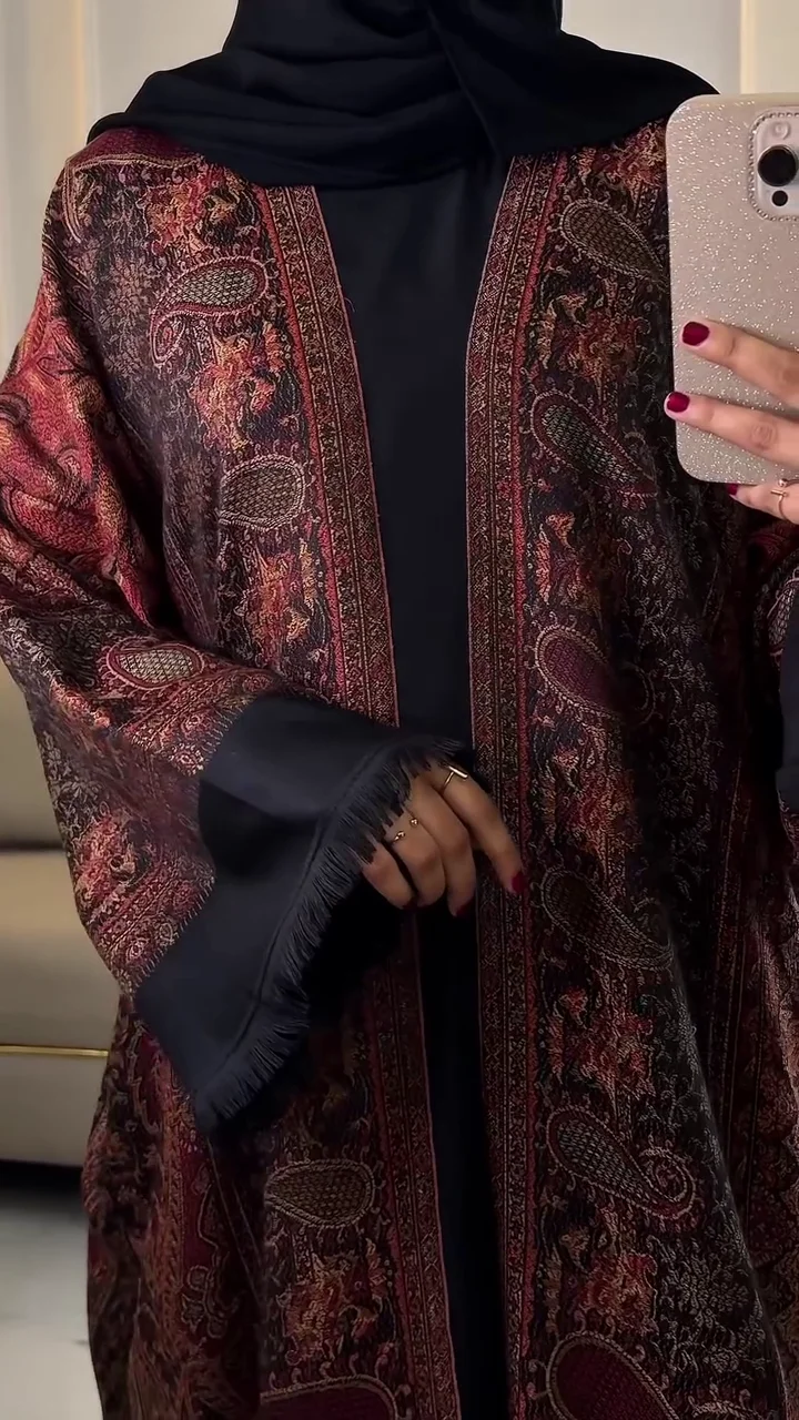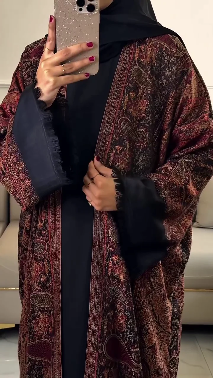 This elegant paisley print open abaya is designed for women who love modest fashion with a touch of sophistication. The rich brown and maroon paisley pattern gives the outfit a classic and luxurious appearance, making it perfect for casual outings, gatherings, or special occasions. The loose and flowy silhouette ensures comfort while maintaining a graceful and stylish look.