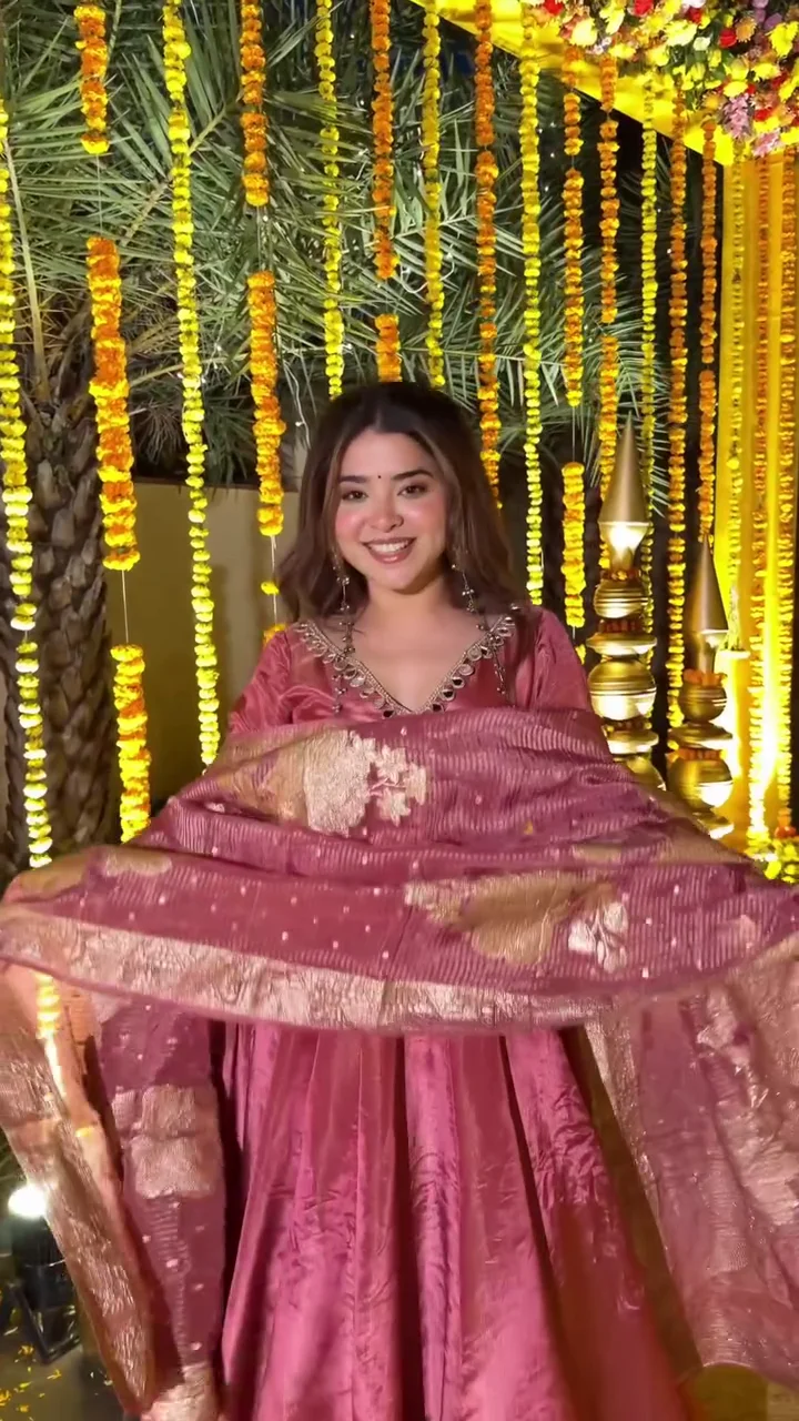 This blush pink lehenga set features a voluminous flare with a smooth, lustrous finish that adds festive charm. Paired with a matching dupatta, the outfit is ideal for weddings, receptions, and special celebrations. The soft tone combined with elegant movement makes it a statement piece for evening occasions.