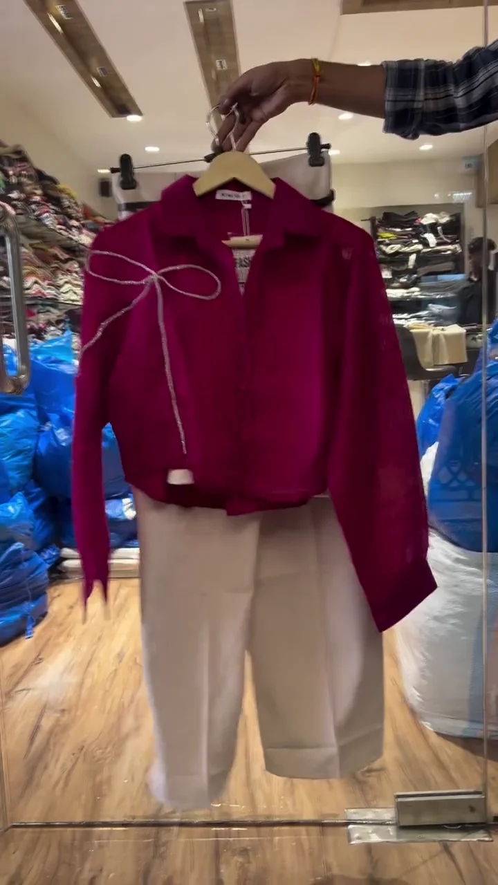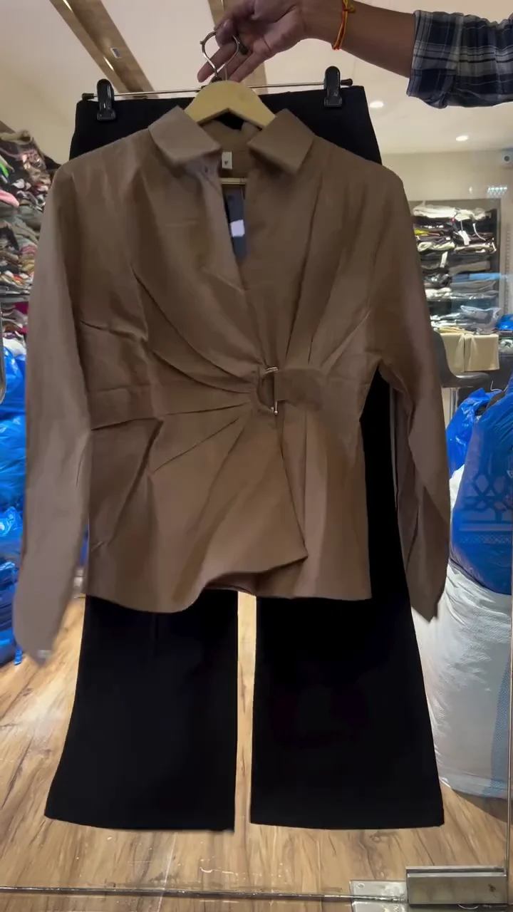 This coordinated set includes a rust-colored collared top with a relaxed fit and subtle side slits for added comfort. It is paired with textured wide-leg pants in a neutral tone, creating a contemporary and effortless outfit. The soft fabric and loose silhouette make it perfect for everyday wear, travel, or casual meetups. The earthy rust shade adds warmth and style to your wardrobe.