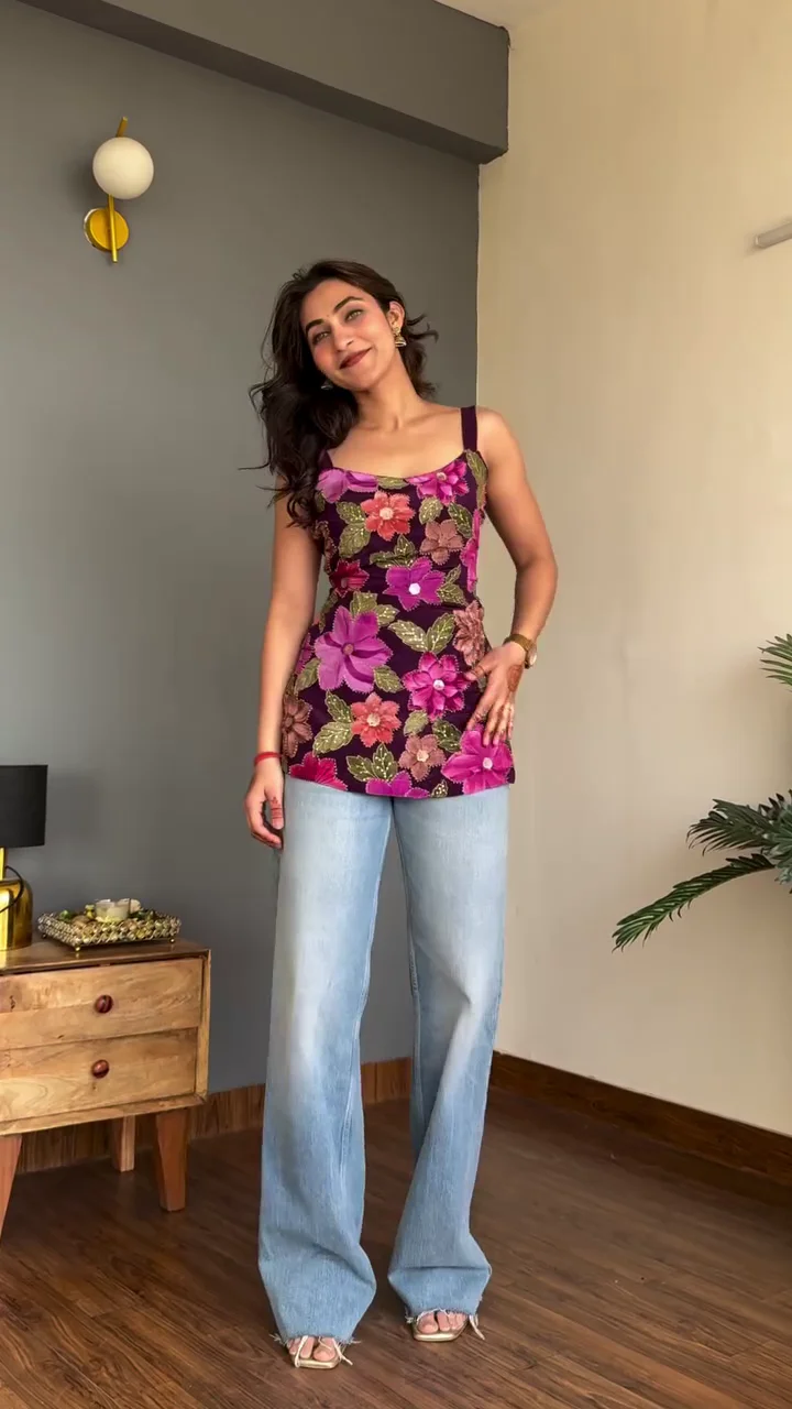 This soft pink sleeveless kurti features delicate prints and a detailed border near the hemline. Styled with light blue denim jeans, it creates a fusion look that blends traditional and modern fashion. The fitted upper design highlights the silhouette while ensuring comfort. Suitable for casual outings, college wear, or daytime events, this piece offers a fresh and youthful vibe.