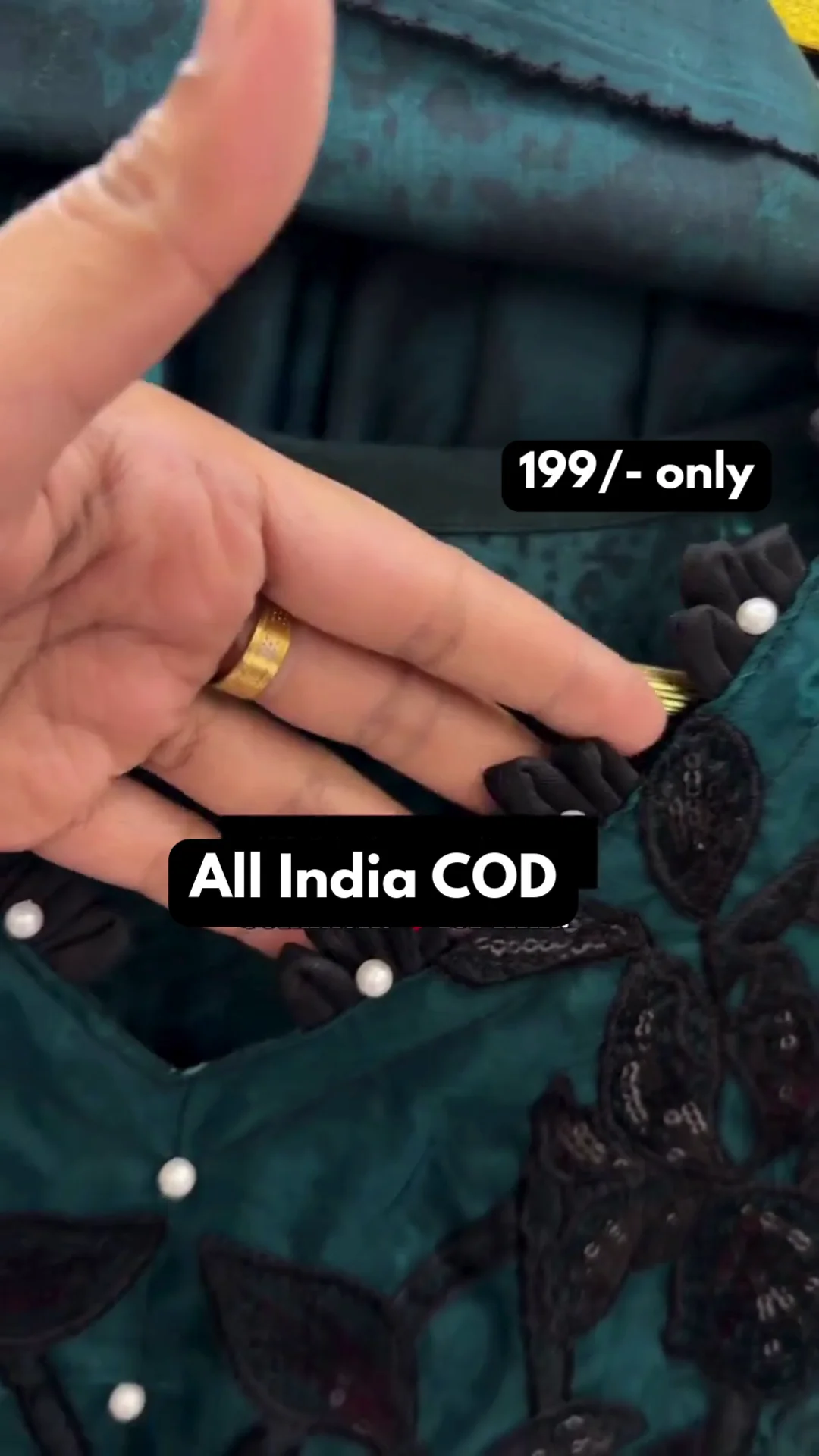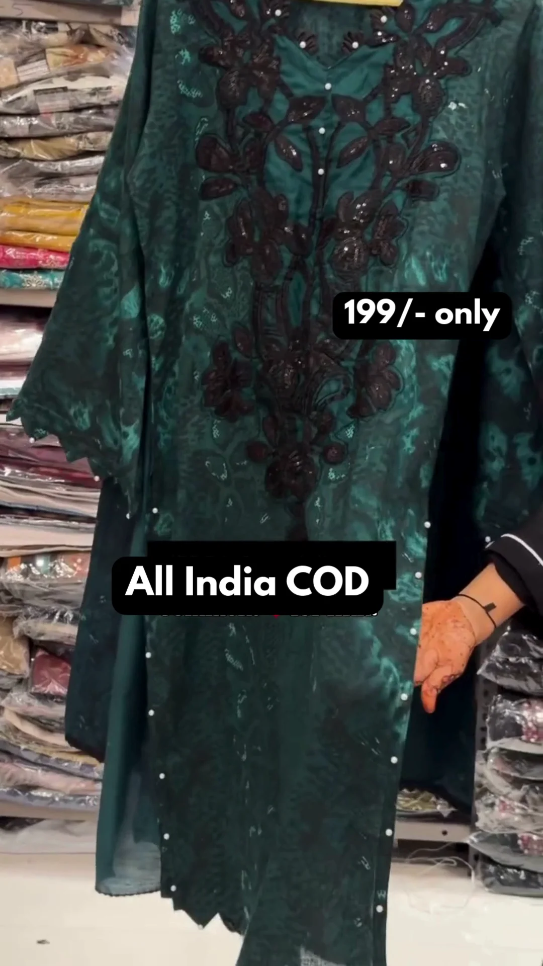 A rich emerald green suit adorned with detailed threadwork and subtle embellishments across the neckline and bodice. The flowy silhouette and full sleeves create an elegant and flattering appearance ideal for evening events and celebrations.