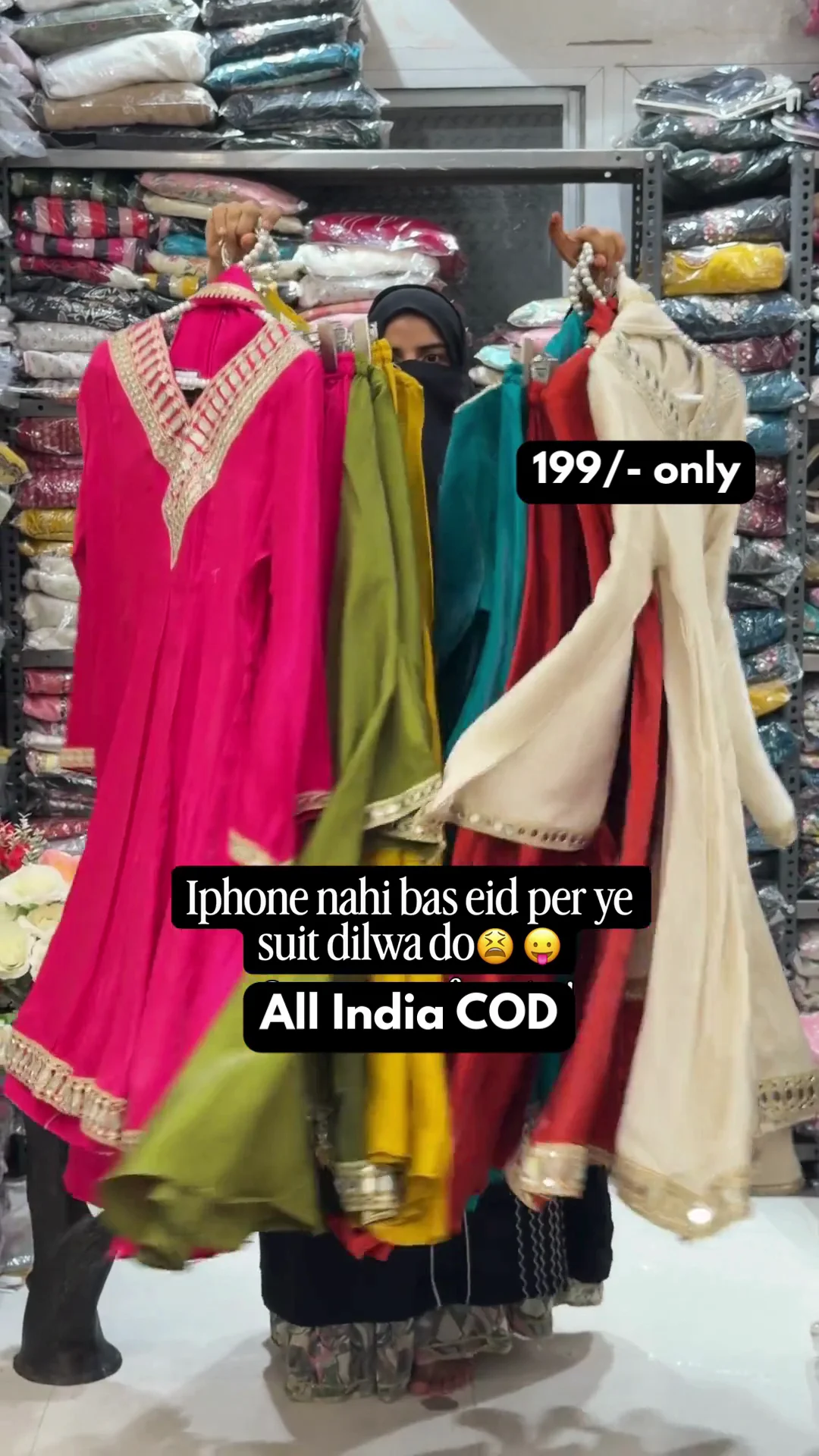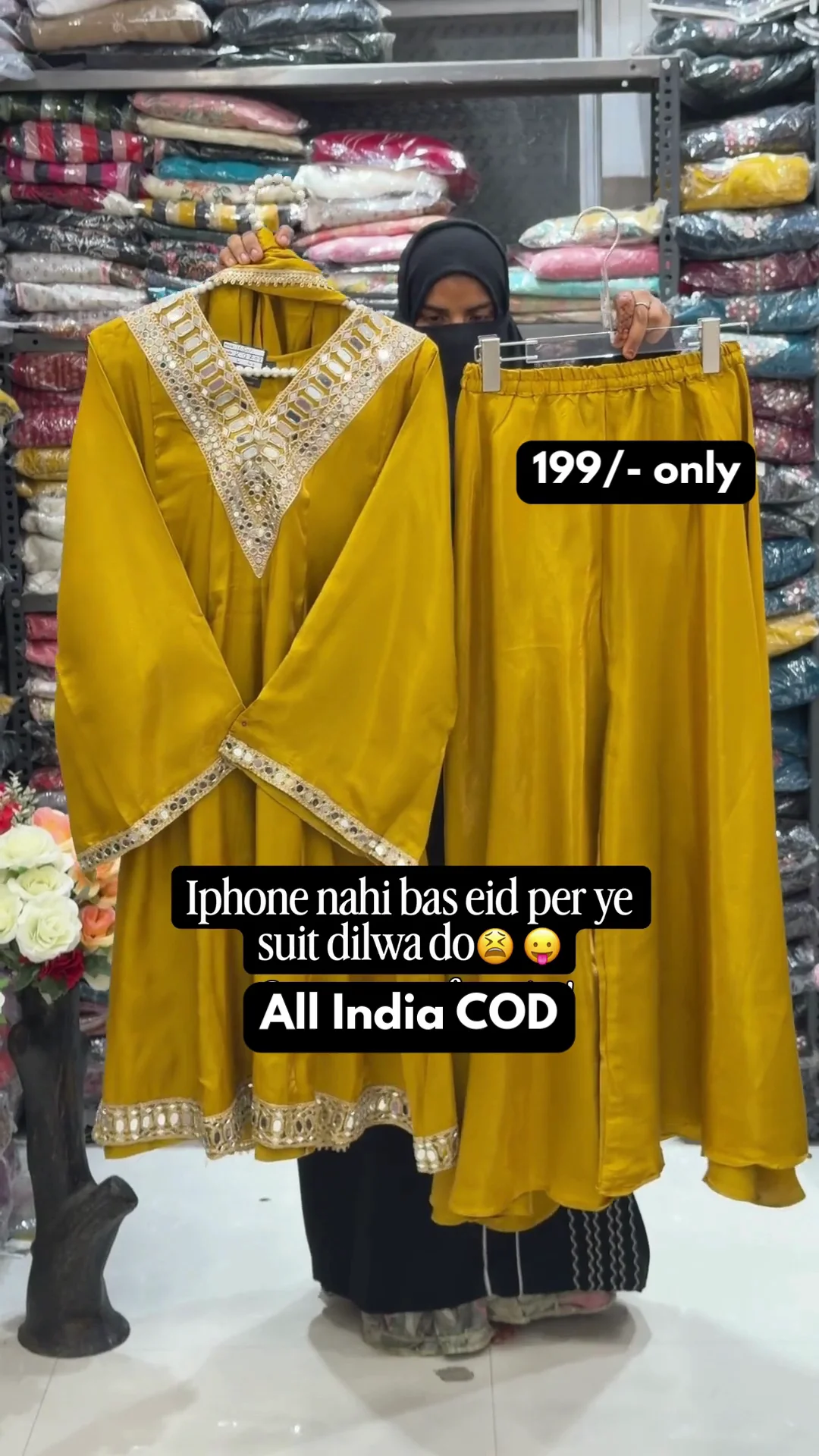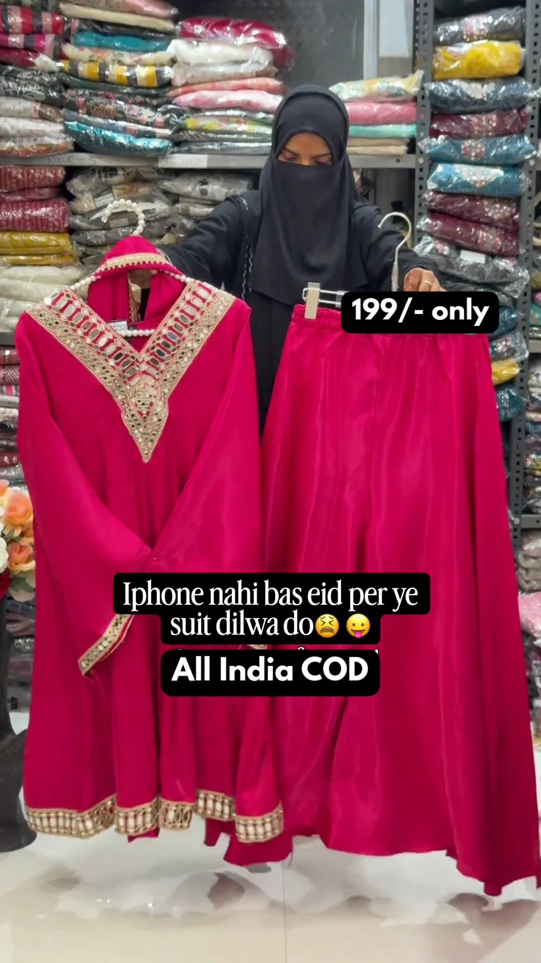 A vibrant pink Anarkali-style suit highlighted with heavy golden embroidery on the neckline and borders. The flared cut and detailed sleeve work add grandeur, making it a perfect outfit for festive functions and traditional celebrations.