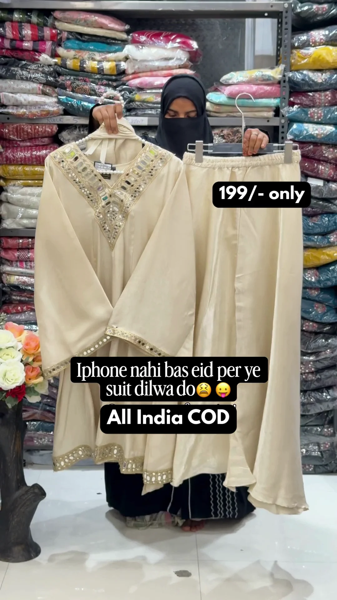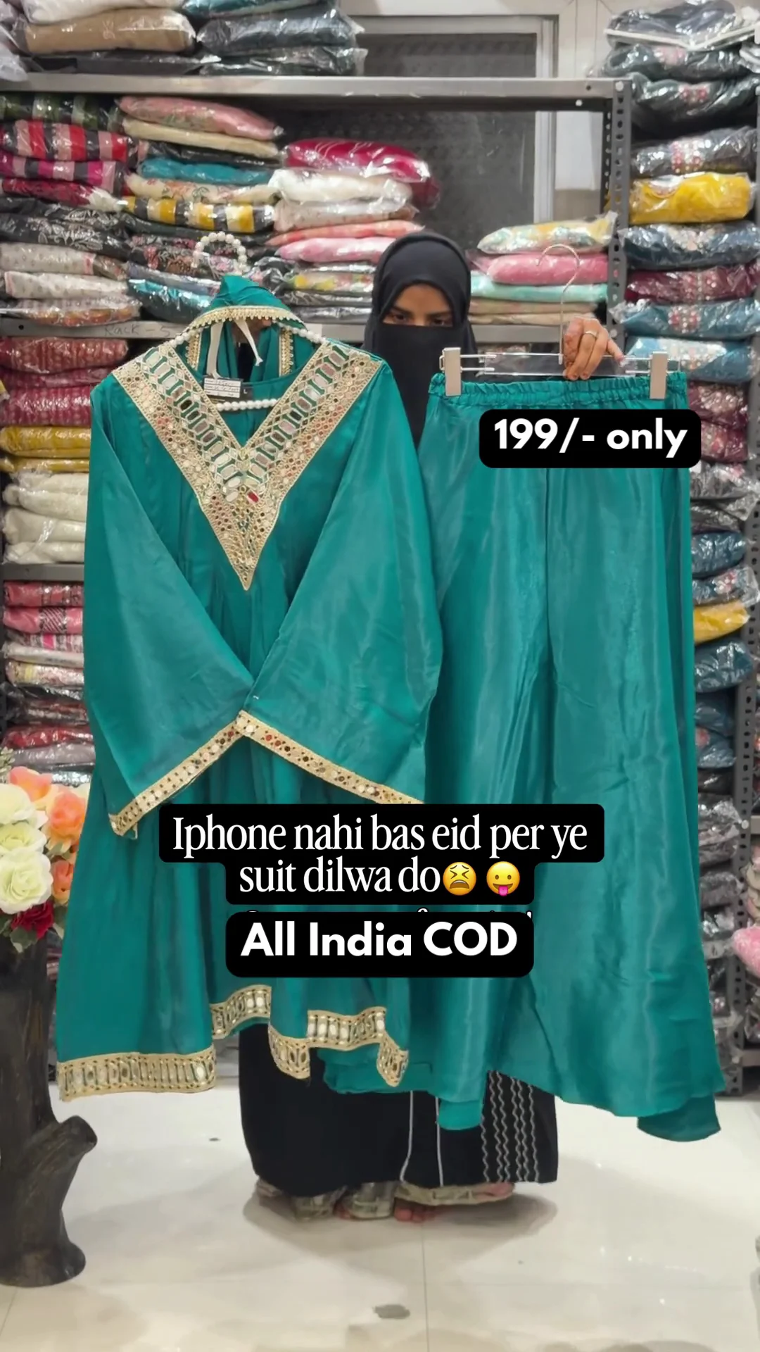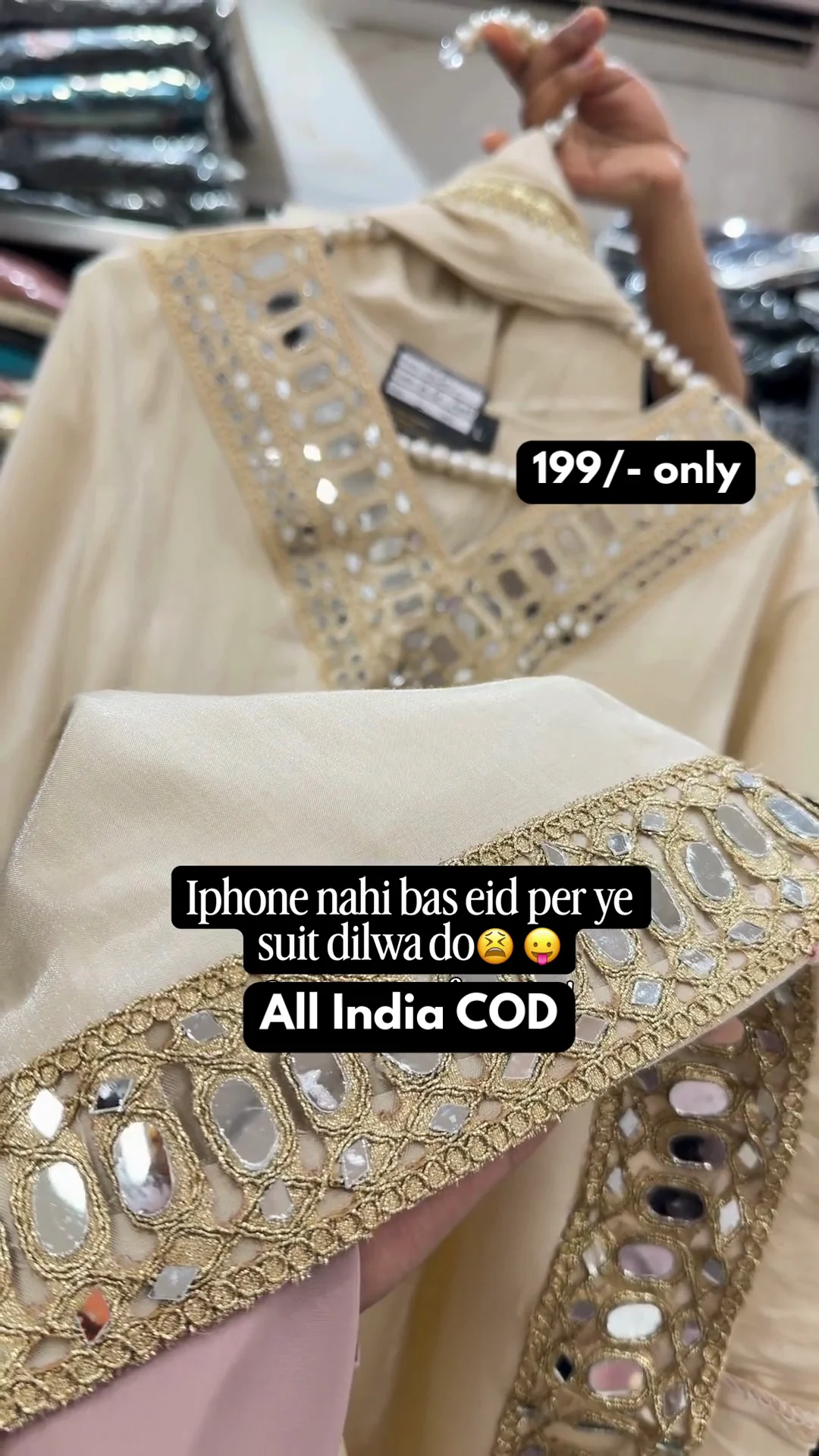 A vibrant pink Anarkali-style suit highlighted with heavy golden embroidery on the neckline and borders. The flared cut and detailed sleeve work add grandeur, making it a perfect outfit for festive functions and traditional celebrations.