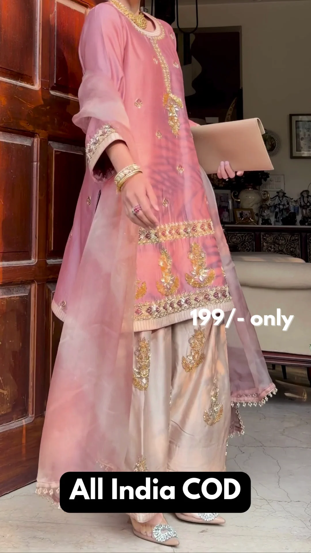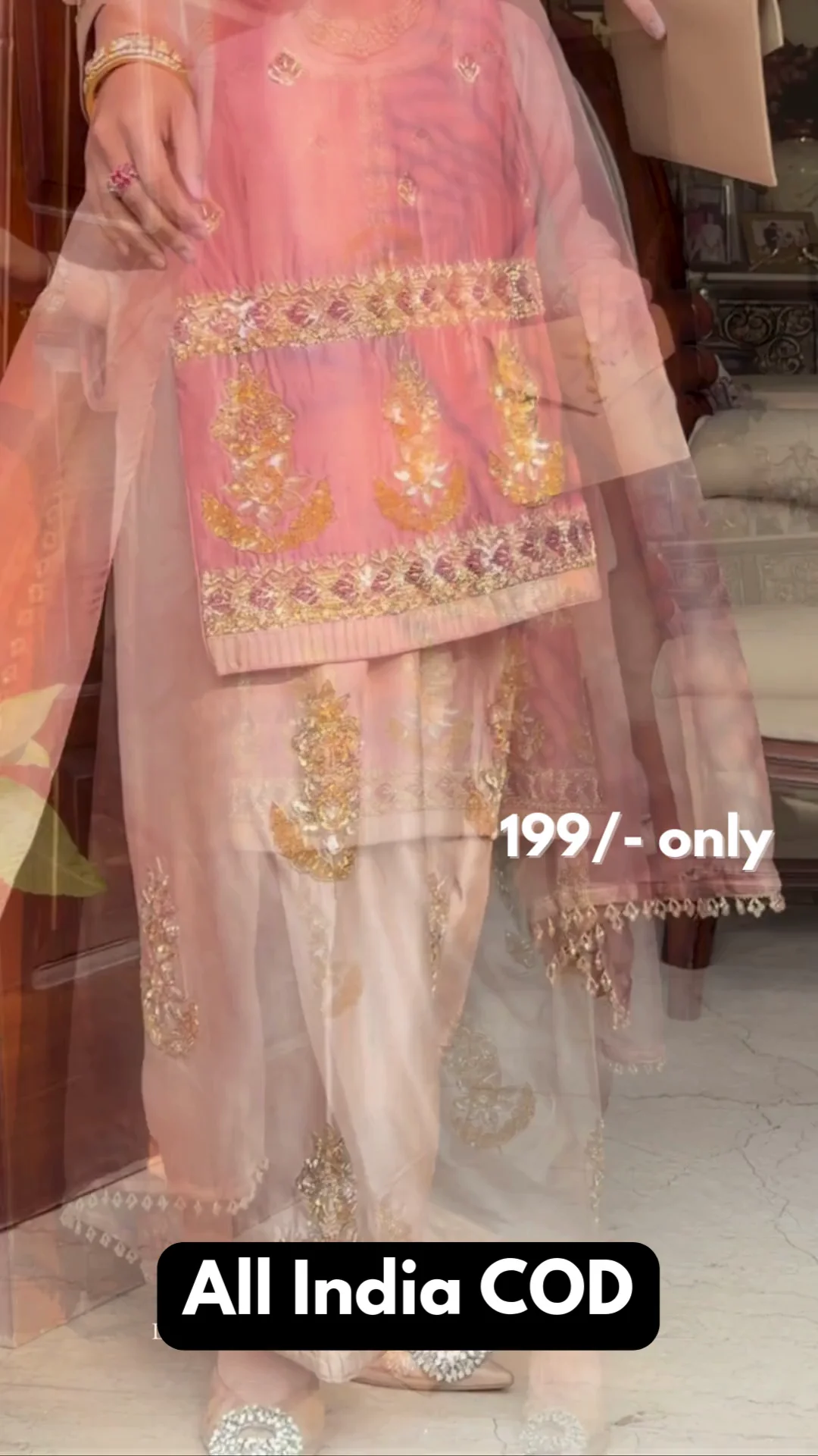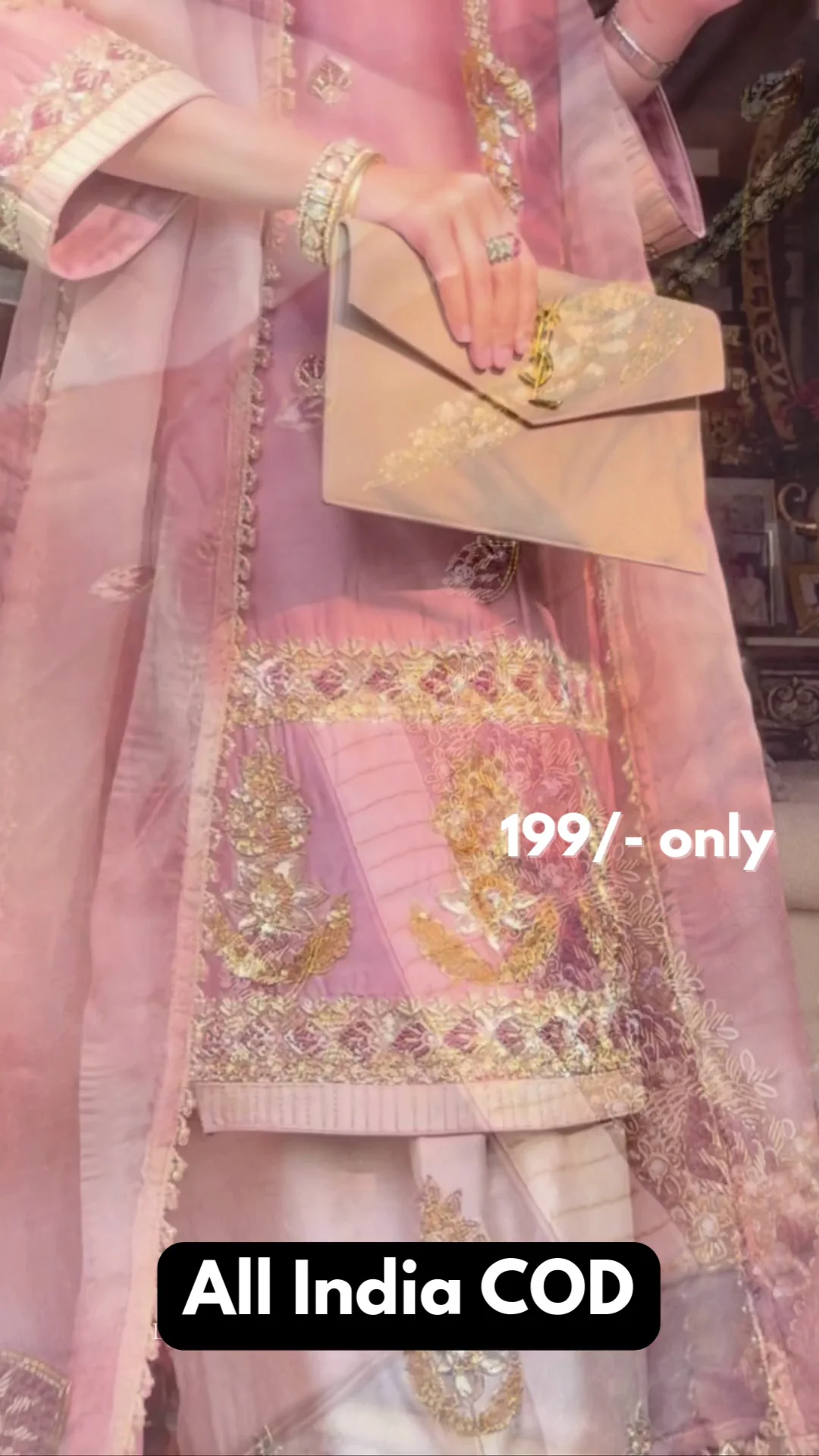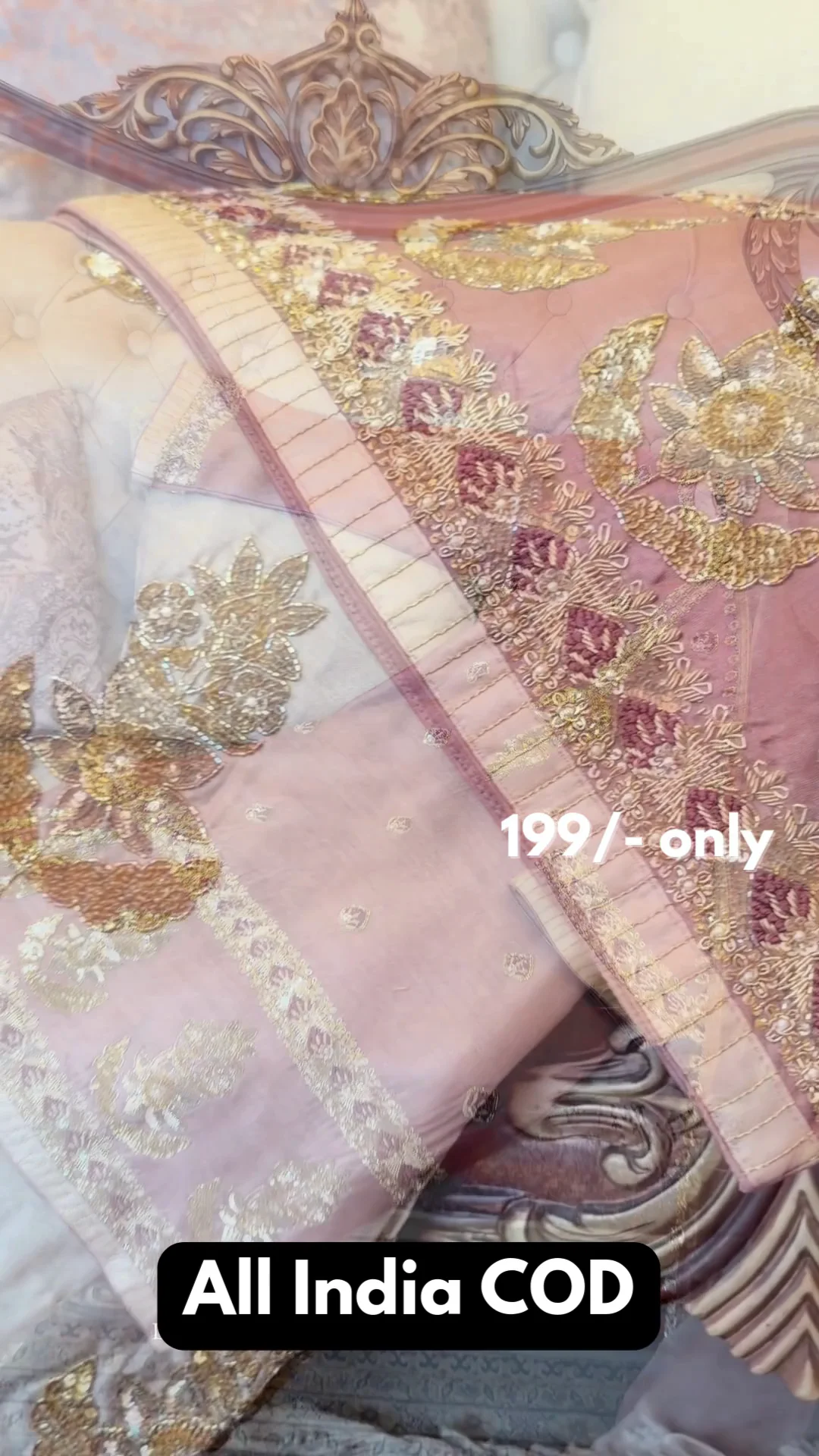 A heavily embellished dusty pink gown-style outfit with detailed bodice embroidery and a flared skirt. Paired with a matching dupatta, this set delivers a graceful and regal look ideal for wedding functions and festive events.