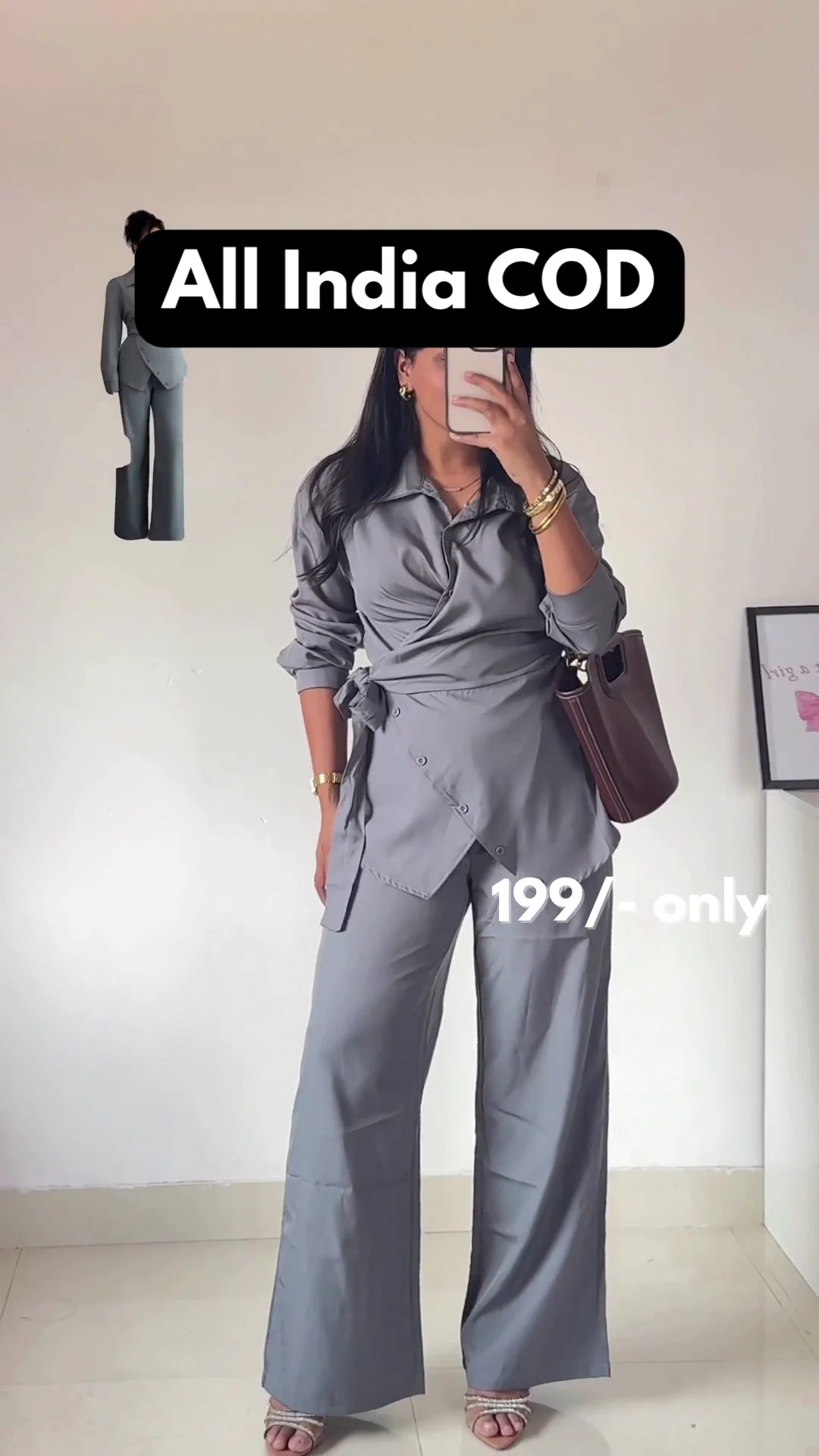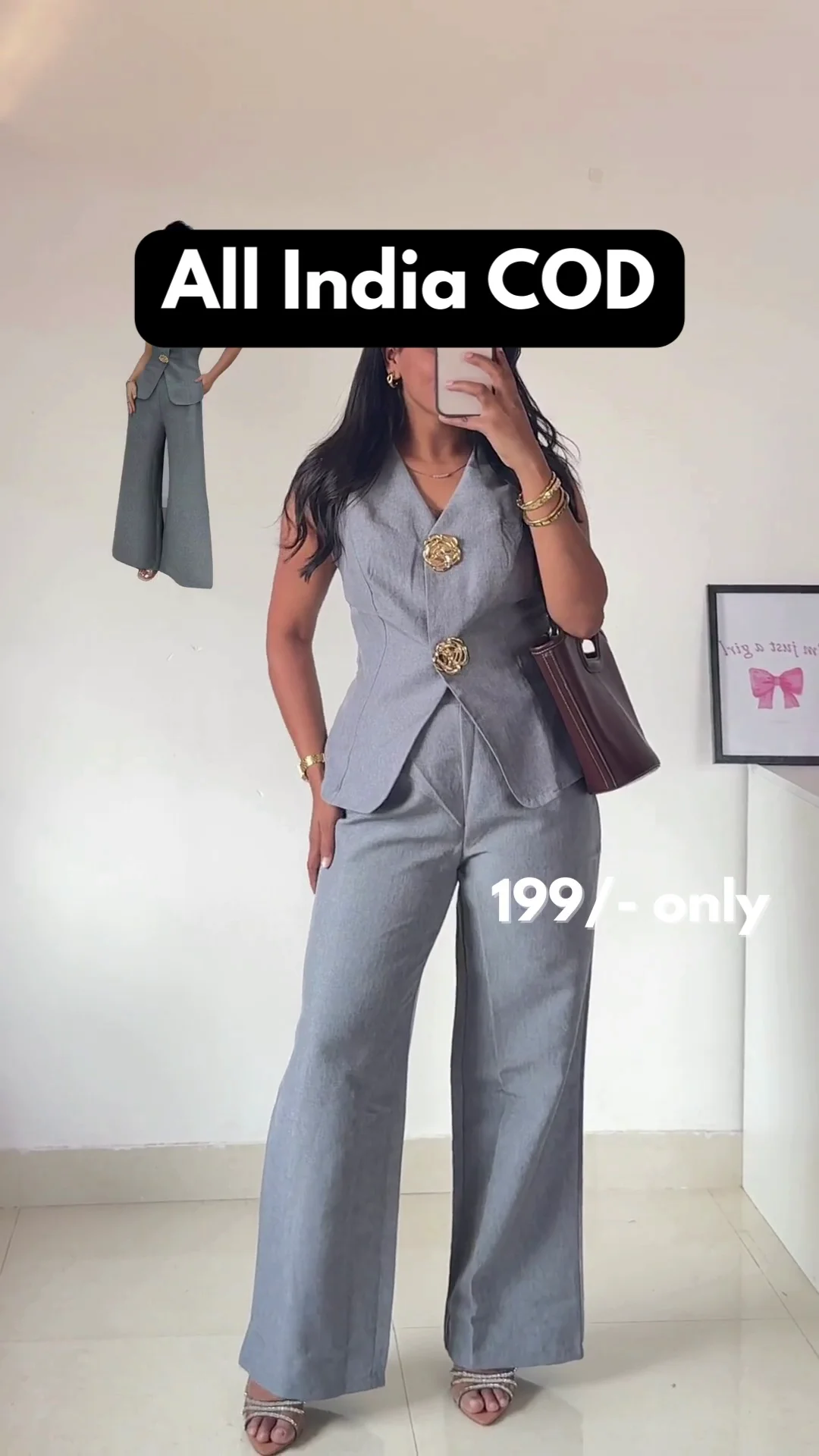 Make a bold and sophisticated style statement with this elegant grey two-piece suit set. The outfit includes a tailored sleeveless vest with stylish gold button detailing and perfectly matched wide-leg trousers. Designed to enhance both comfort and elegance, this outfit is ideal for office wear, formal meetings, or stylish outings. The structured vest provides a flattering shape, while the trousers offer a relaxed yet polished fit. This versatile set can be styled with heels or flats to create a professional and modern look that stands out effortlessly.