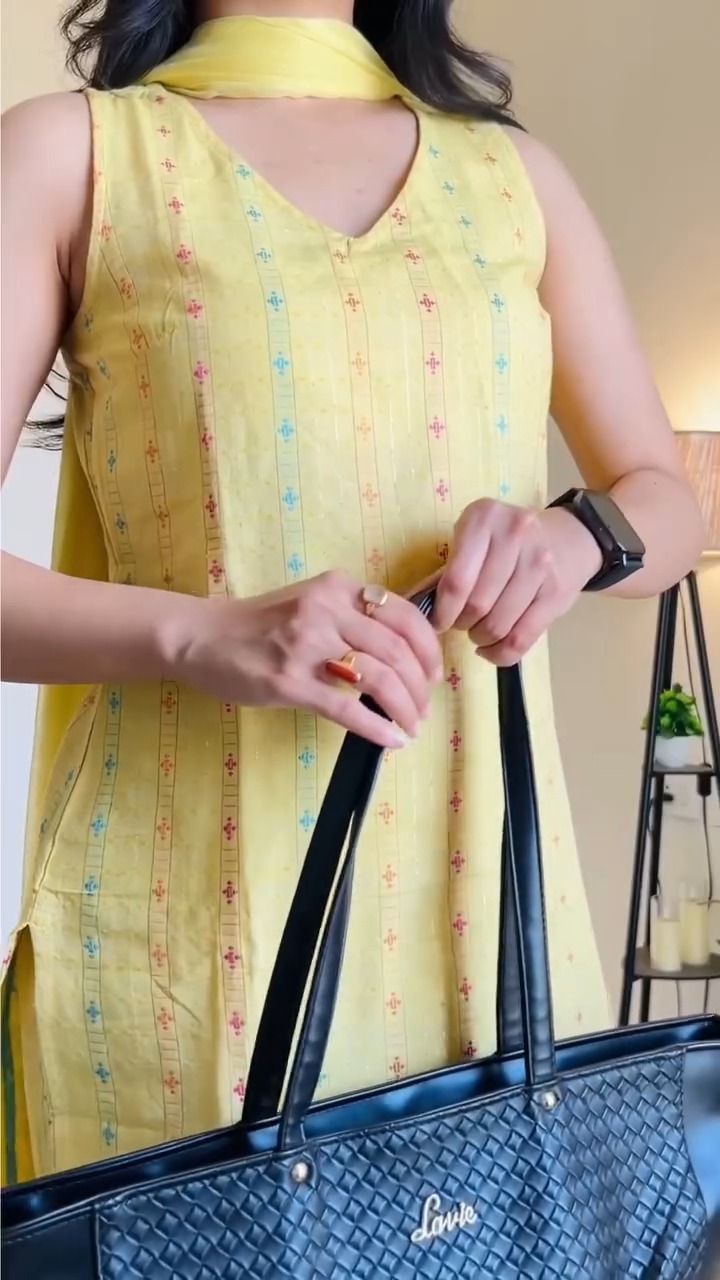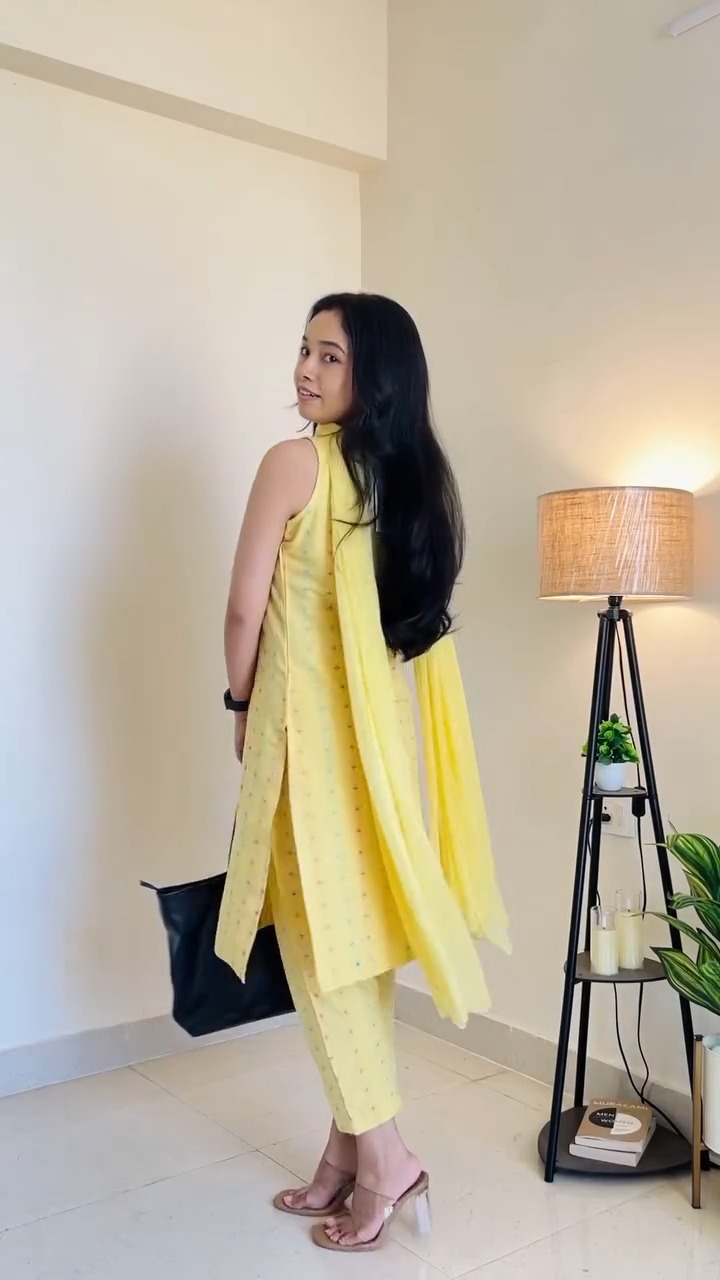 Brighten up your everyday ethnic style with this cheerful yellow printed kurta set, designed to bring comfort and freshness to your wardrobe. The soft yellow base is enhanced with subtle multi-color prints, creating a lively yet balanced look perfect for daytime wear. The sleeveless kurta offers a relaxed and breathable fit, making it ideal for warm weather and long hours of wear. Paired with a matching dupatta, the outfit adds a touch of elegance while keeping the overall style simple and easy to carry. Perfect for casual outings, office wear, or small gatherings, this outfit combines effortless style with all-day comfort, making it a versatile choice for any occasion.