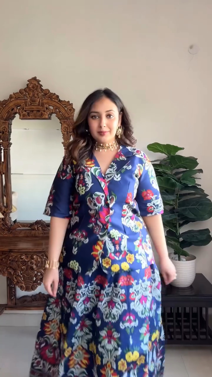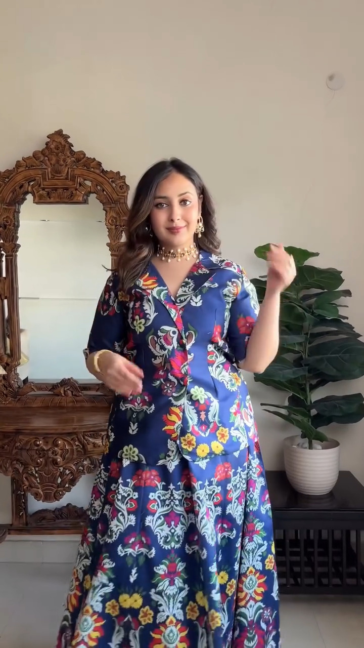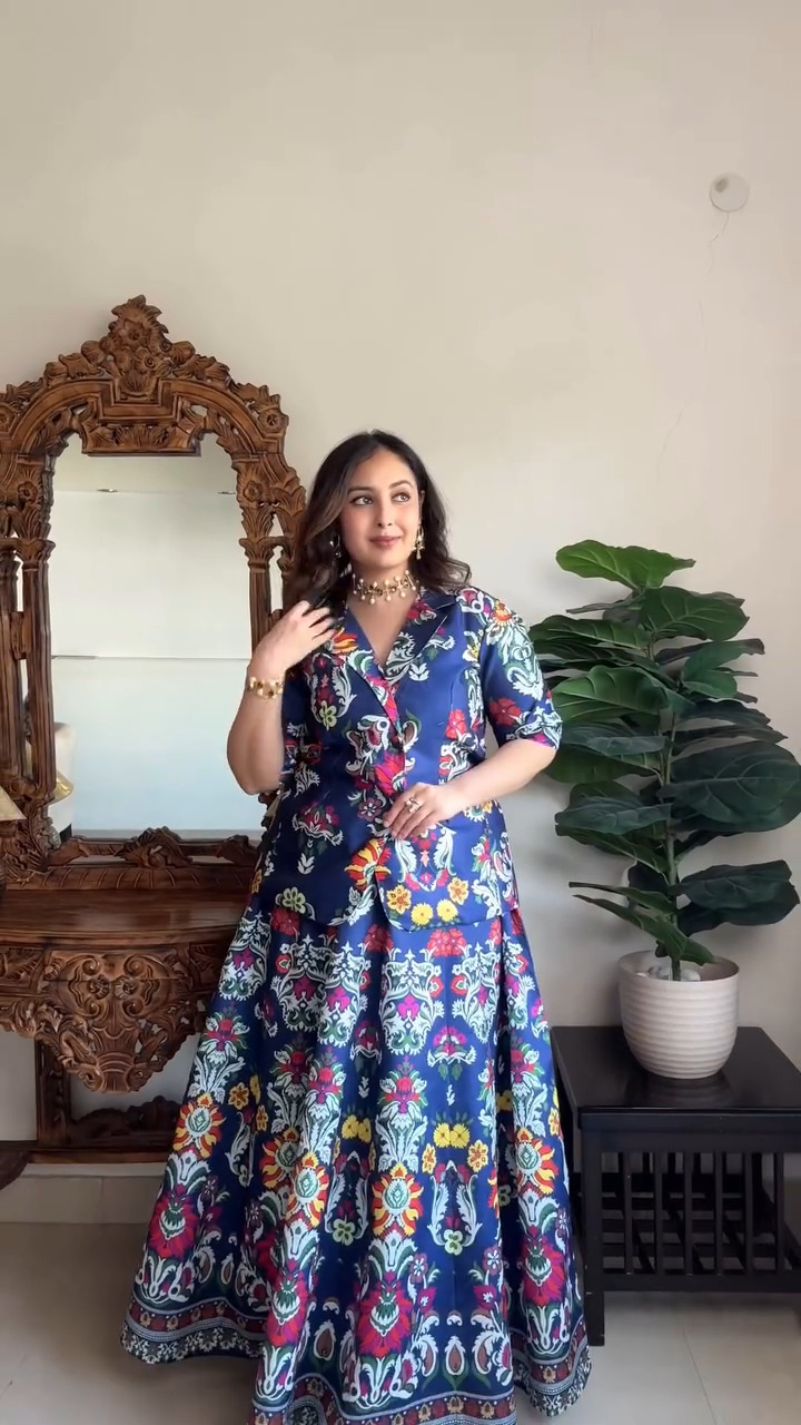 Elevate your everyday ethnic style with this stunning navy blue Anarkali dress featuring vibrant floral prints that bring a refreshing and modern touch to traditional wear. Designed with a flattering V-neckline and relaxed half sleeves, this outfit offers both comfort and effortless elegance. The rich base color beautifully complements the multicolored floral patterns, creating a striking visual appeal that stands out without being overpowering. The flared silhouette adds graceful movement, making it perfect for casual gatherings, festive occasions, or day events. Crafted for ease and style, this dress allows you to stay comfortable while looking chic and polished throughout the day. Pair it with minimal jewelry or statement accessories to create a versatile look that transitions seamlessly from day to evening.