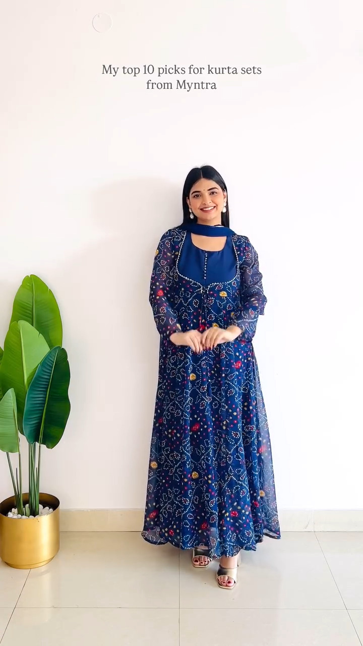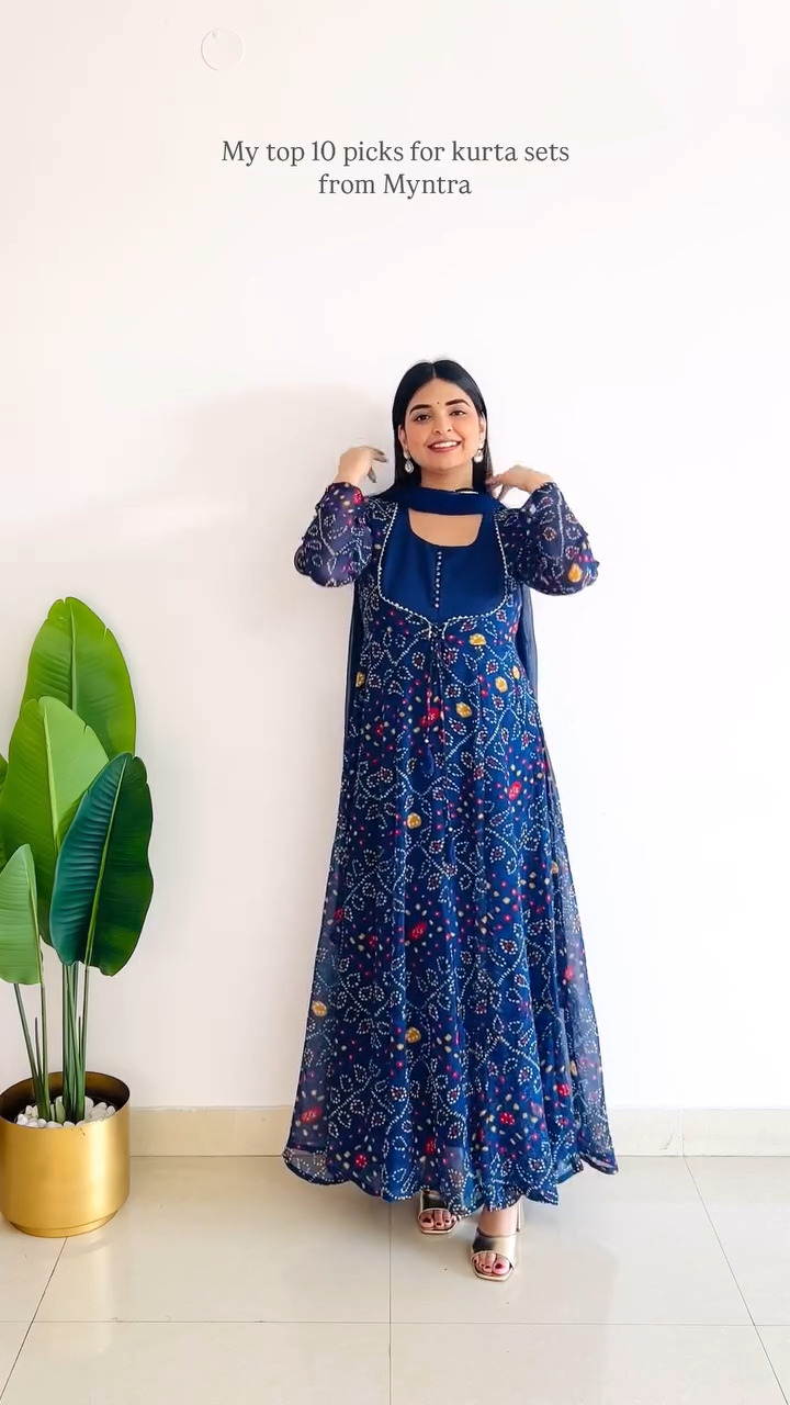 Make a stylish statement with this navy blue layered Anarkali kurta set that beautifully blends contemporary design with traditional charm. The outfit features an inner solid kurta paired with a sheer printed overlay adorned with intricate patterns and subtle multicolored accents, creating a rich and eye-catching look. The flowy silhouette adds graceful movement, while the lightweight fabric ensures all-day comfort and elegance. Complemented with a matching dupatta, this ensemble is perfect for festive occasions, evening gatherings, or special celebrations where you want to stand out effortlessly. The detailed design and layered structure add depth and sophistication, making it a versatile addition to your ethnic collection. Pair it with statement earrings and minimal footwear to complete a refined and fashionable look.