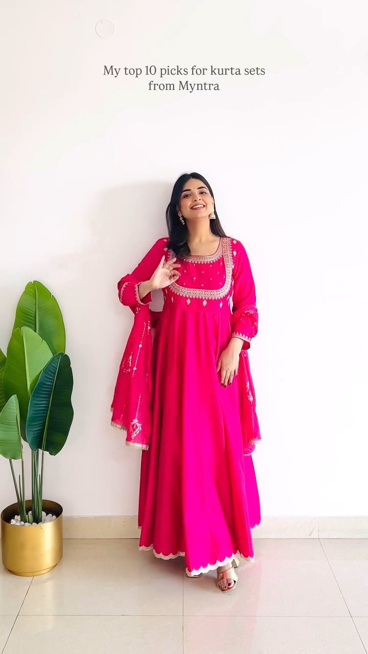 Step into festive elegance with this stunning bright pink Anarkali kurta set designed to make a graceful statement. The kurta features intricate embroidery around the neckline and delicate motifs across the bodice, adding a rich and refined touch to its vibrant hue. Its flared silhouette creates beautiful movement, offering both comfort and a flattering fit for all body types. Paired with matching bottoms and a lightweight dupatta adorned with subtle detailing and tassel accents, this ensemble brings together traditional charm and modern style effortlessly. Crafted from soft, breathable fabric, it ensures all-day comfort while maintaining a polished and festive look. Perfect for weddings, celebrations, and special occasions, this outfit can be styled with statement earrings and elegant footwear for a timeless and eye-catching appearance.