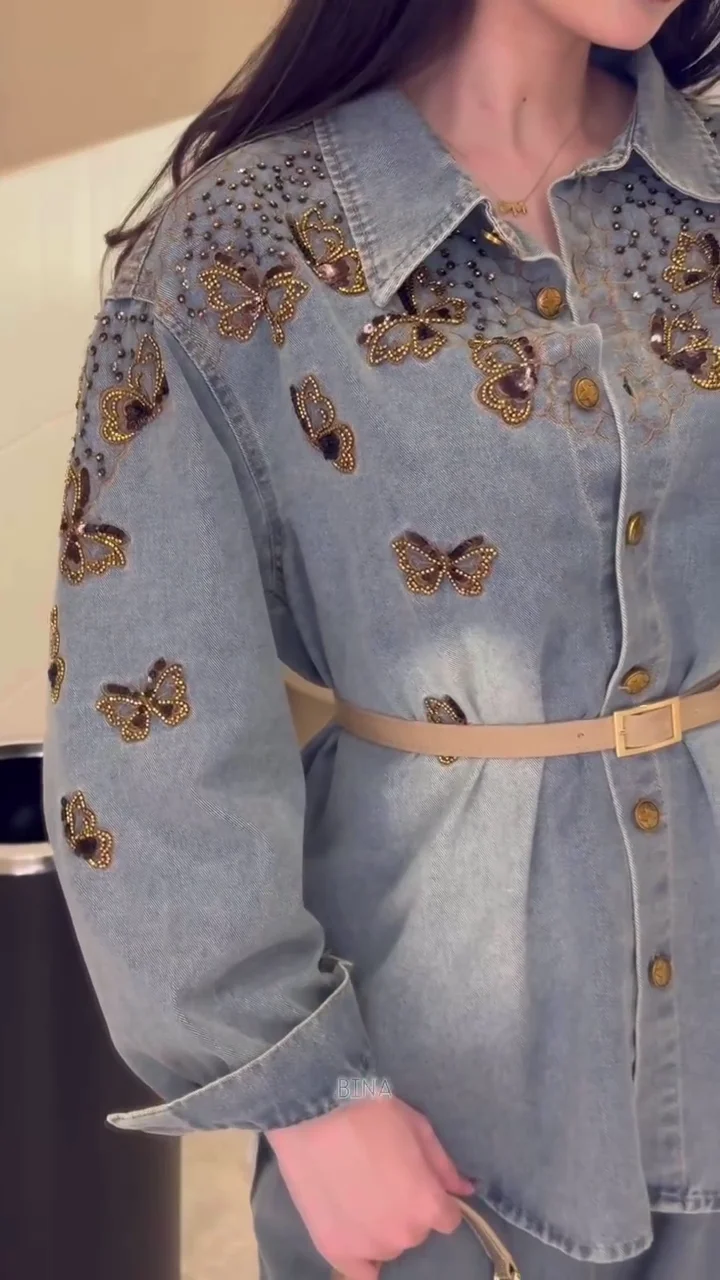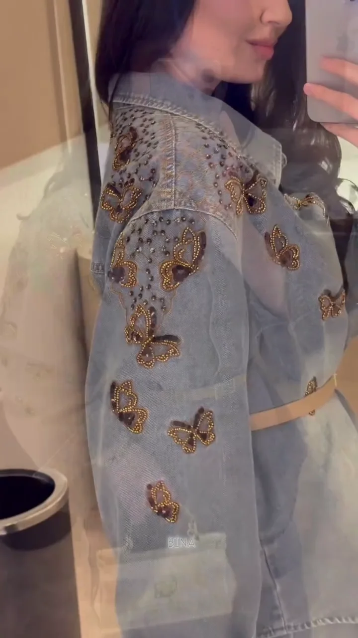 This stylish denim jacket features intricate butterfly embroidery and stud embellishments along the sleeves, adding a unique and eye-catching detail to a classic wardrobe staple. Designed with a relaxed fit, it layers effortlessly over dresses, tops, or co-ord sets. The soft denim fabric ensures comfort while maintaining structure and durability. Perfect for casual outings or statement layering, this jacket adds a fashionable edge to any outfit and works well across seasons.
