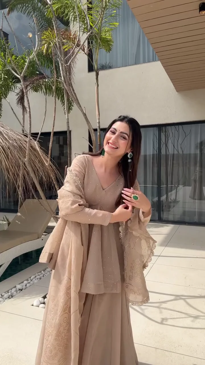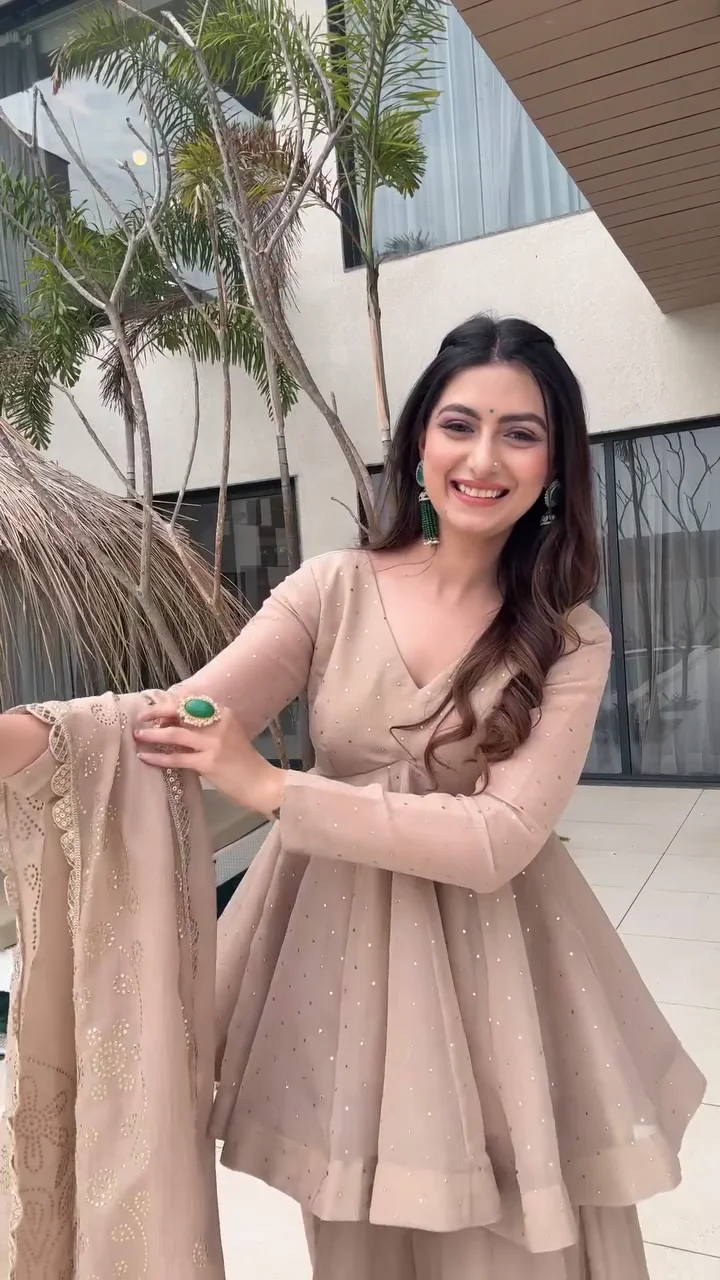This elegant beige kurta set is paired with classic farshi-style pants that offer volume and regal appeal. The kurta features subtle embellishments that elevate the look without overpowering it. Crafted for comfort and flow, this ensemble is perfect for festive gatherings, daytime weddings, and traditional celebrations. The soft neutral tone allows for versatile styling with statement jewelry.