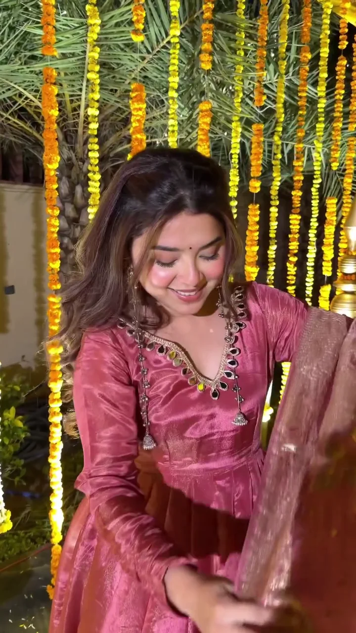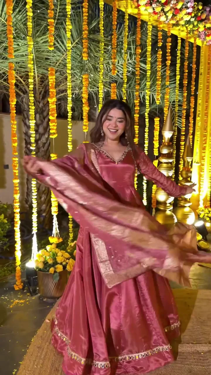 This blush pink lehenga set features a voluminous flare with a smooth, lustrous finish that adds festive charm. Paired with a matching dupatta, the outfit is ideal for weddings, receptions, and special celebrations. The soft tone combined with elegant movement makes it a statement piece for evening occasions.